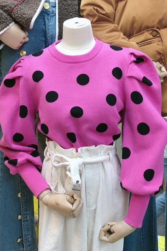 Nomikuma Dot Pullover Knitwear Causal O-neck Women Knitted Tops 2020 Autumn Ropa De オータム 秋物 Oネック kor44858367807