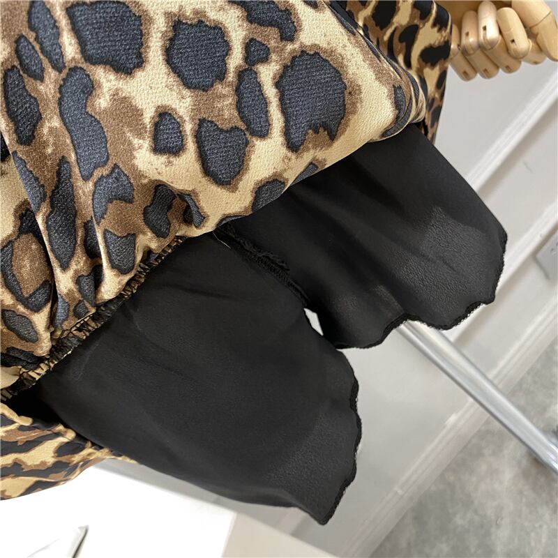 ノミクマセクシーレオパードストレッチウエストレディーススカート2020サマーダブルフリルミニAラインスカートFaldasModa 6A787 夏物 kor7636448012