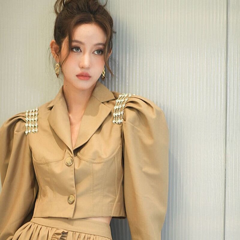 のみくま春女子スカートセットパフスリーブターンダウンカラーショートコート+ウエストフリルAラインミニスカート2022 スプリング 春物 kor63600781381