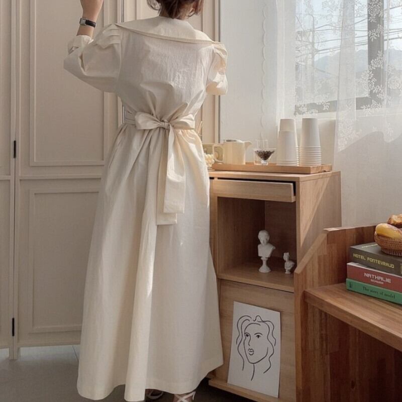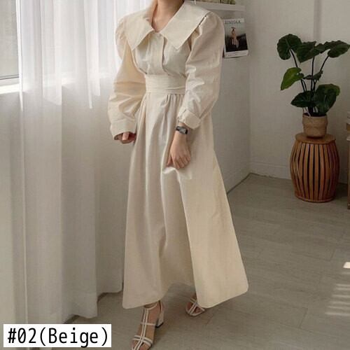 ノミクマウーマンドレスオータムボウバンデージスリムウエストドレス2021パフスリーブターンダウンカラー リボン 秋物 kor62735568991
