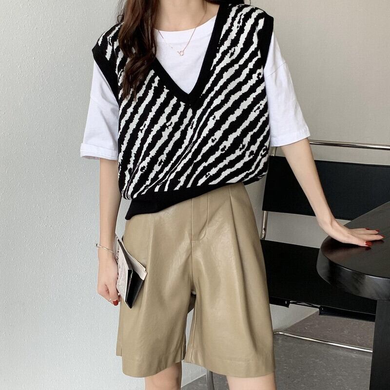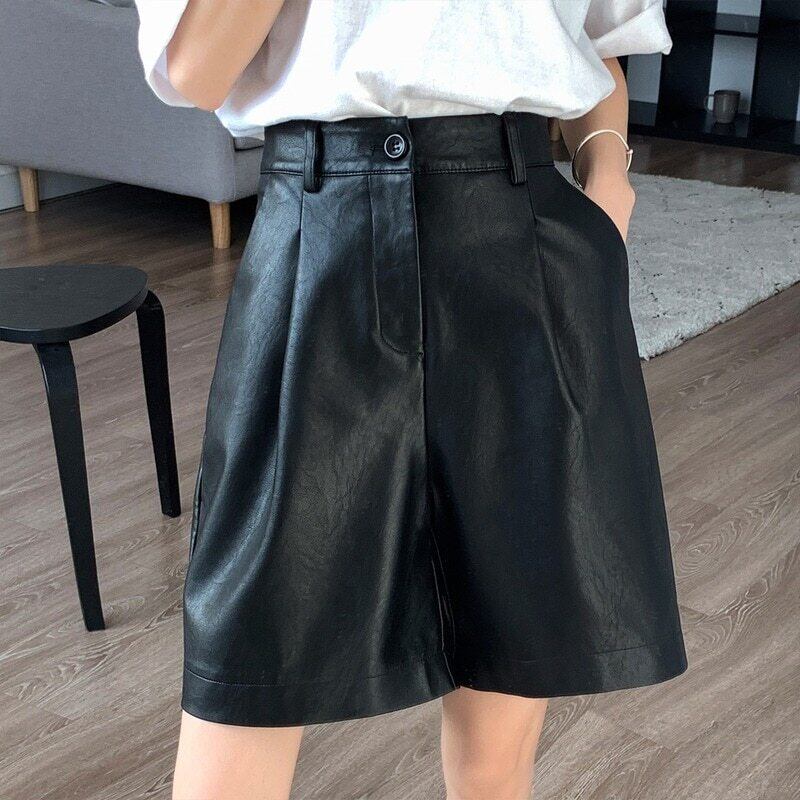 ノミクマPUレザーウーマンハーフパンツウエストボトムス2021年秋膝丈パンツフェミニマ6Z523 オータム 秋物 kor40149958116