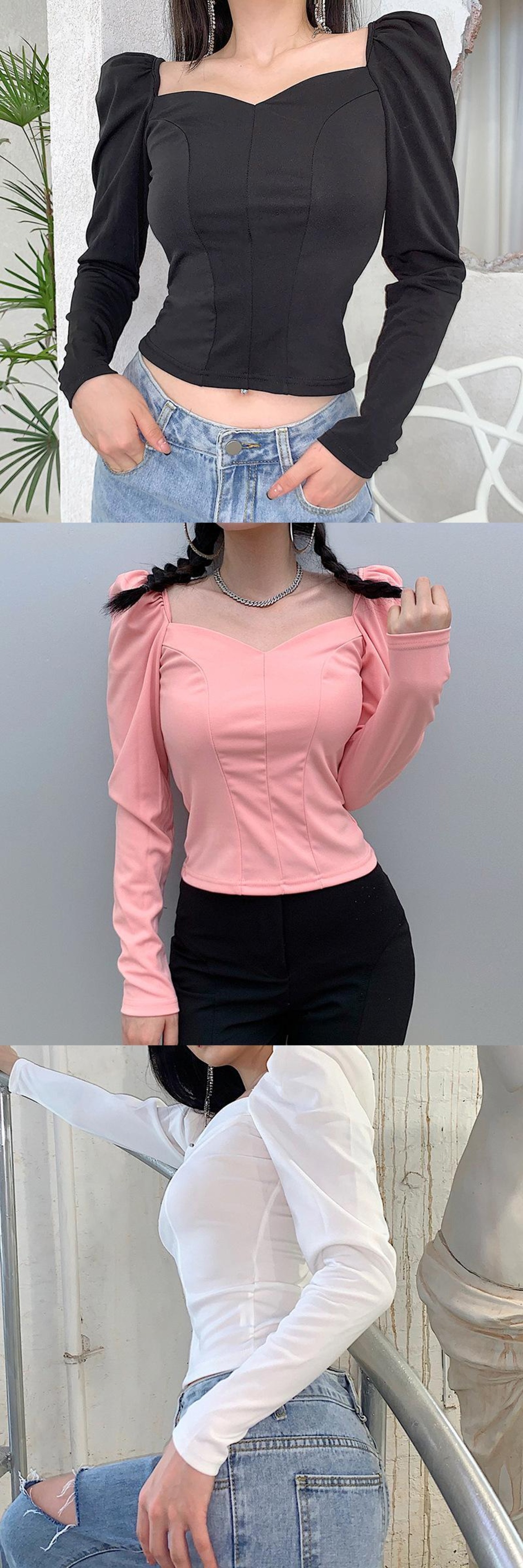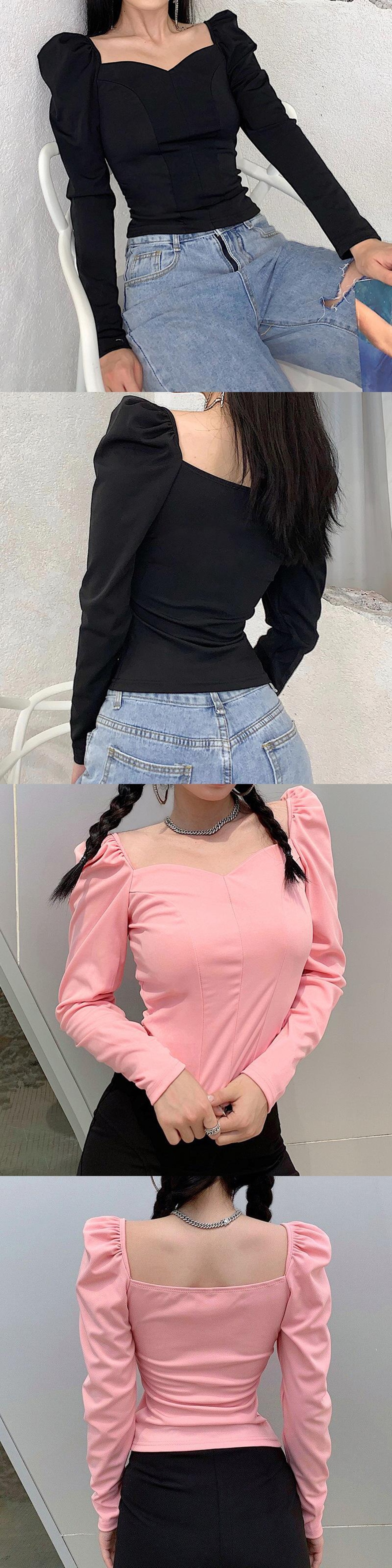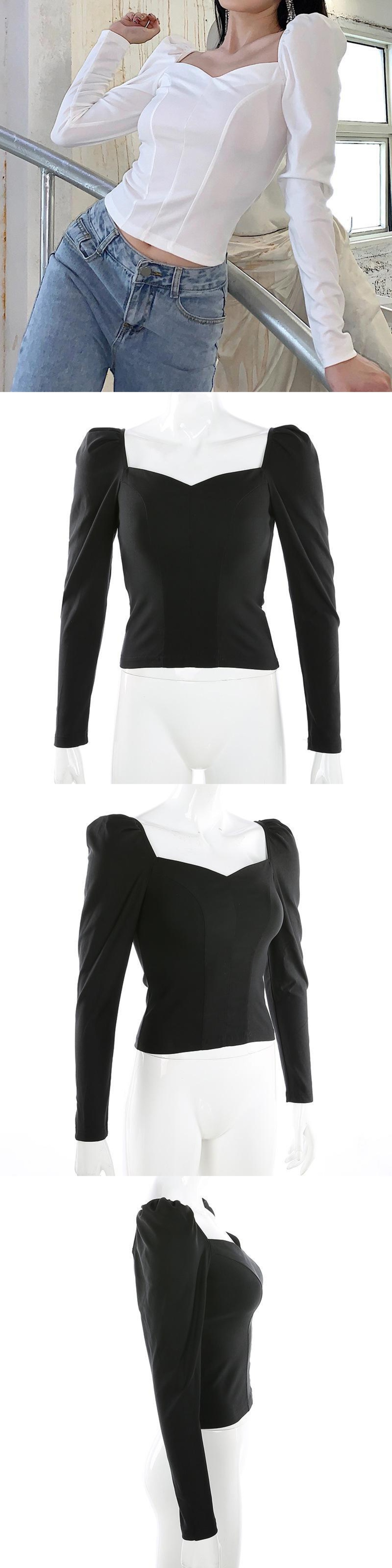 のみくまヴィンテージスクエアカラーレディースブラウスパフ長袖スリムショートトップ2020秋セクシーシャツ6C328 ロング オータム 秋物 スクウェア ビンテージ kor7211357082