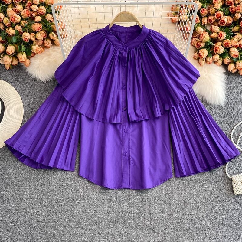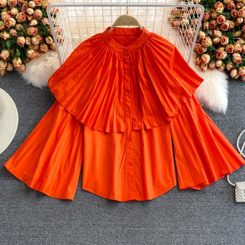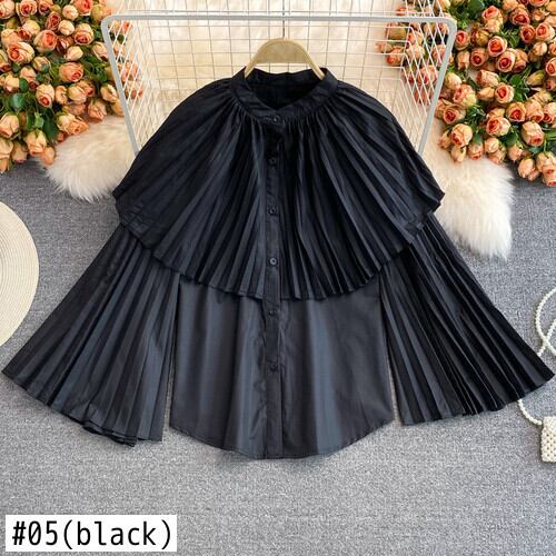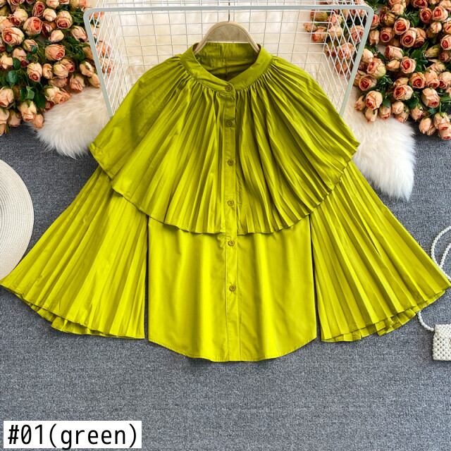 ノミクマウィメンズブラウスフォールドフリルフレアスリーブトップシャツ2021オータムスタンドネックデモダ6L175 秋物 kor14434559484