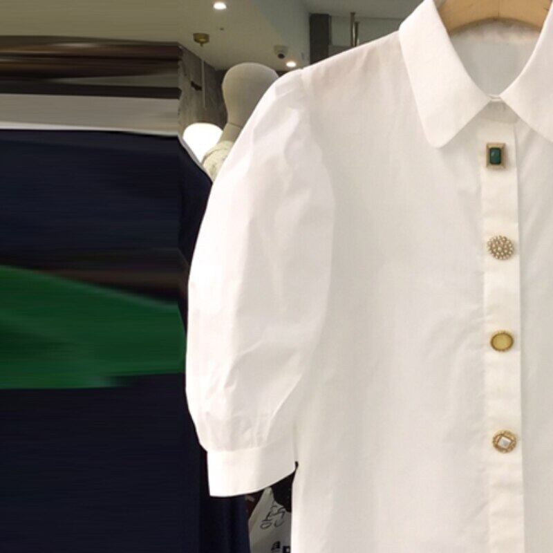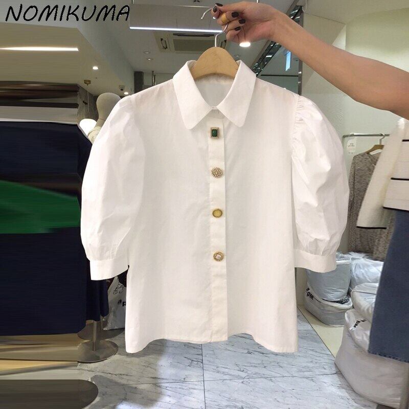 ノミクマレディーストップス2021サマーパフスリーブブラウス因果ターンダウンカラーシングルブレストシャツ6K264 夏物 kor23158333653