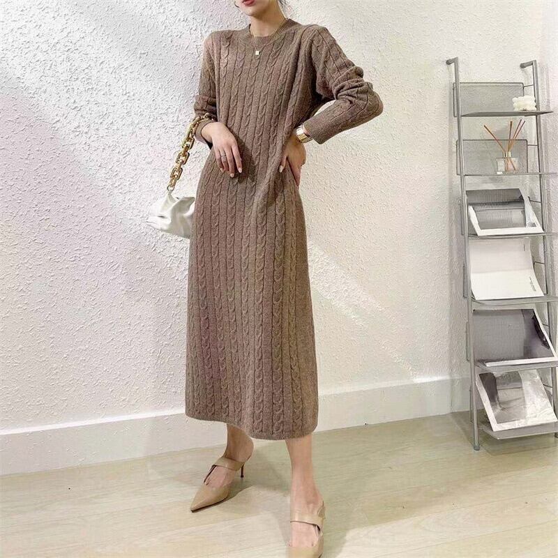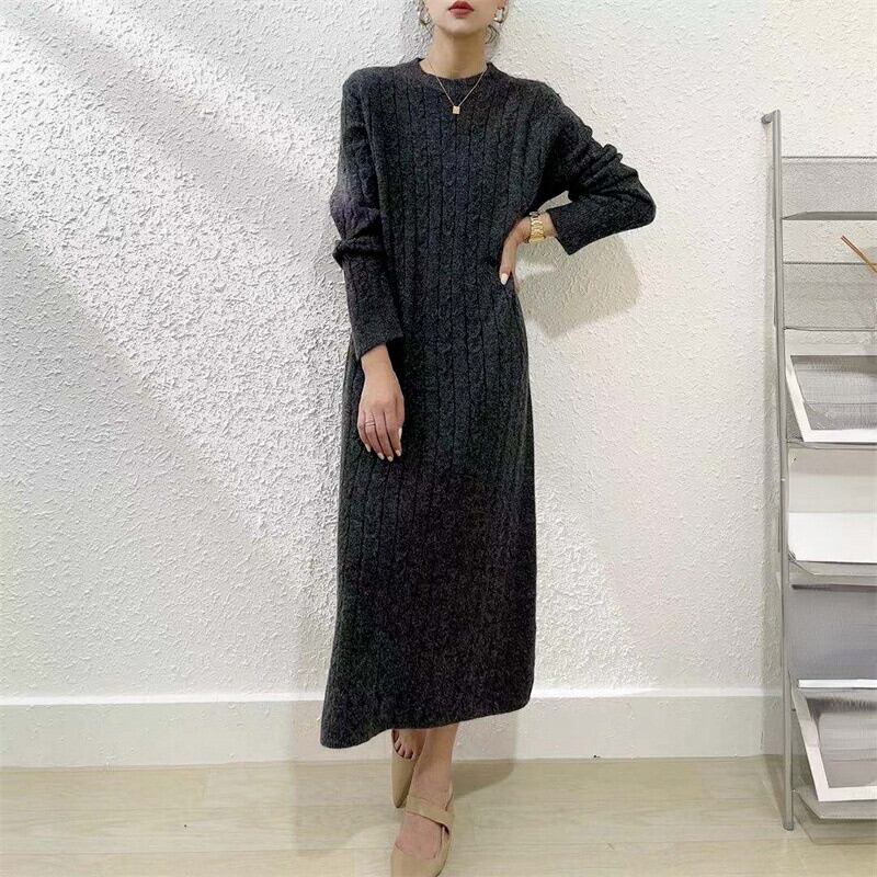 のみくまツイストロングセータードレス女性2021年秋冬ベーシックニットVestidosロングスリーブドレス6Z316 長袖 オータム 秋物 ウィンター 冬物 kor16591520686