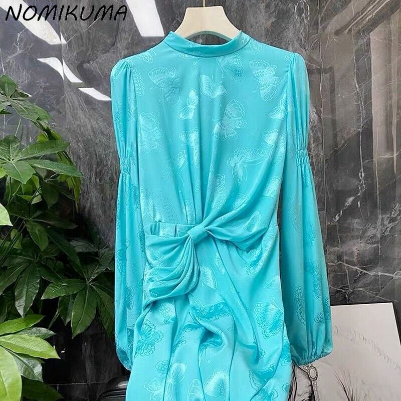のみくまバタフライプリントワンピースレディーススウィートボウノットヴェスティドス2021オータムパフスリーブワンピース6L716 リボン 大人ガーリー キュート カジュアル 秋物 ドレス kor24090865641