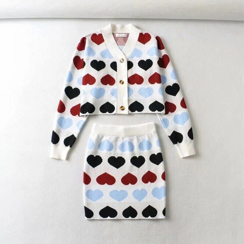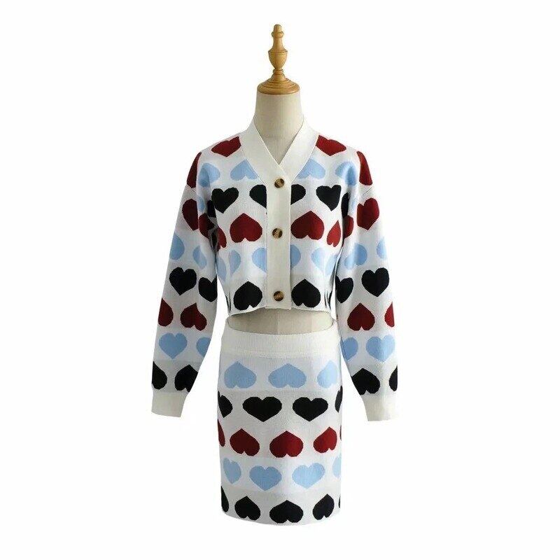 のみくまシックラブハートプリントニットカーディガン長袖VネックレディースセーターVネック2021秋ショートニット6Z278 ロング オータム 秋物 kor16121022405