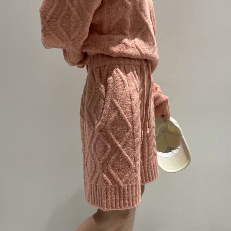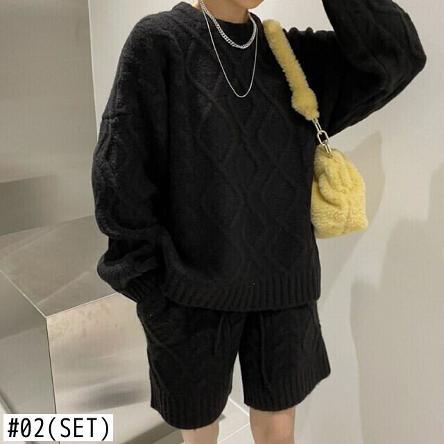 のみくまツイストショートセット因果長袖Oネックセーター+レースアップウエストワイドレッグショーツレディース衣装6V154 ロング ブルマー ワイドパンツ kor27863029995