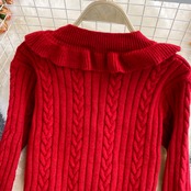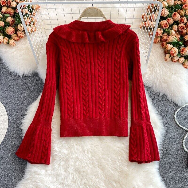のみくまスウィートヒットカラーボウノットセーターレディースフリルVネックフレアスリーブニットトップス2021秋冬6L770 リボン 大人ガーリー キュート カジュアル オータム 秋物 ウィンター 冬物 kor40516027839