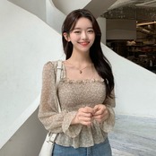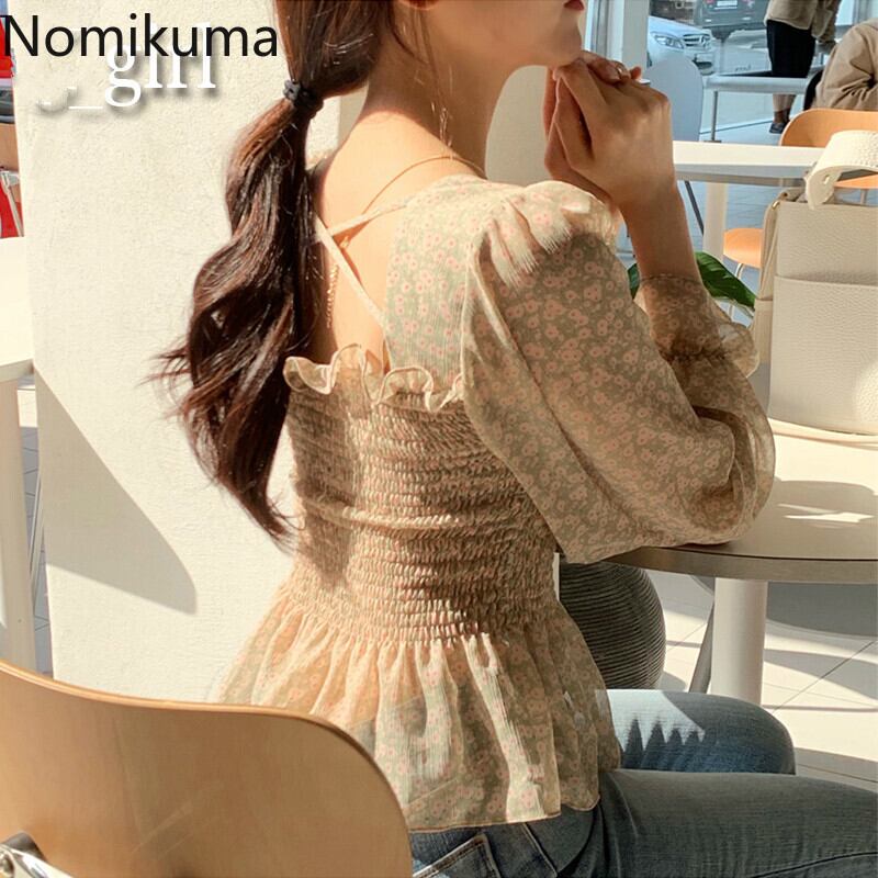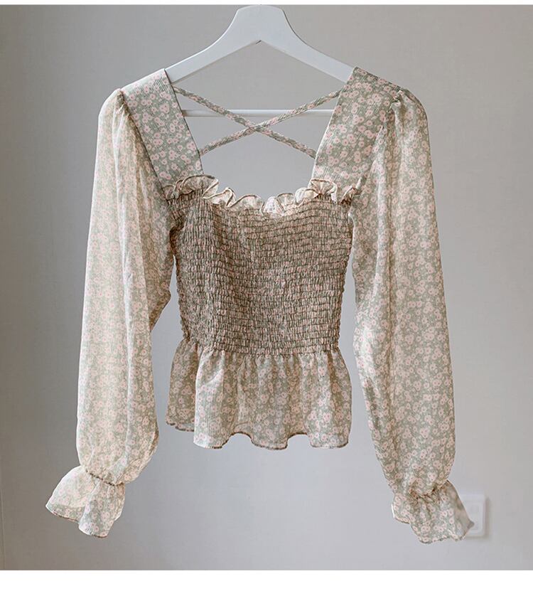 のみくまシフォンフローラルレディースブラウス長袖スクエアカラーレースアップストレッチスリムウエストフリルシャツ20206A654 ロング 花柄 スクウェア kor13623586536