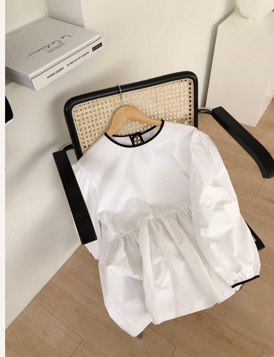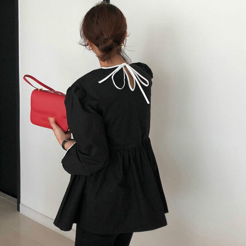 ノミクマレディースドールシャツコーザルパフロングスリーブヒットカラーOネックブラウス2020スウィートトップフェミニモス6D595 長袖 大人ガーリー キュート カジュアル kor44408912988