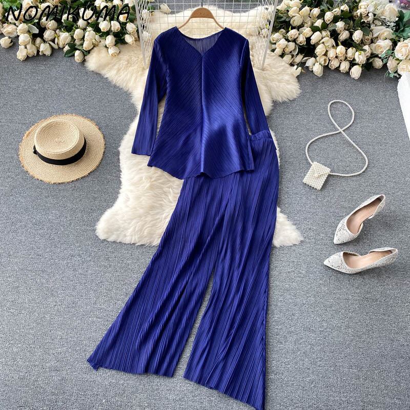 のみくまウーマンパンツセット長袖Vネックブラウストップ+ウエストプリーツワイドレッグパンツ2021衣装6K376 ロング ワイドパンツ kor77970845709
