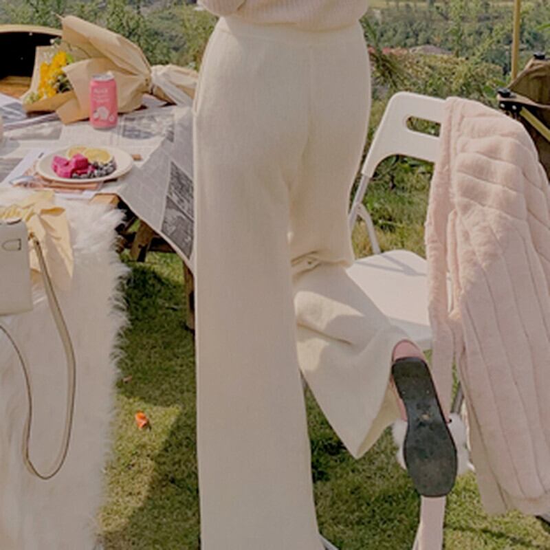 ノミクマホワイトニットワイドレッグパンツレディース2021秋冬ロングパンツウエストセーターパンツDe6V763 オータム 秋物 ウィンター 冬物 ワイドパンツ kor72296208077