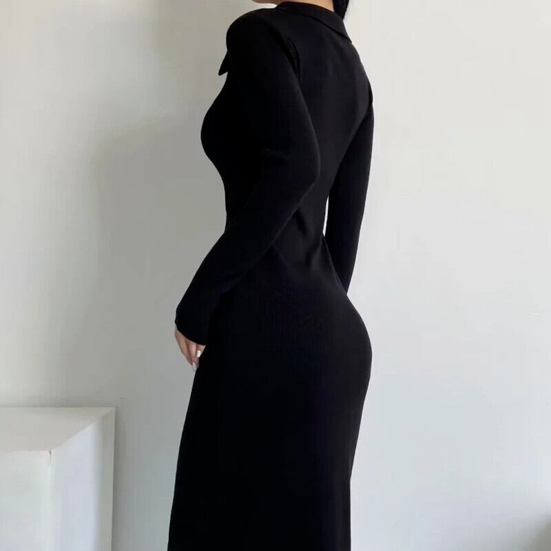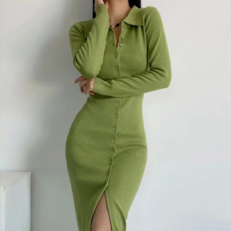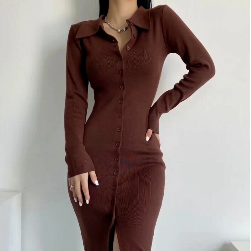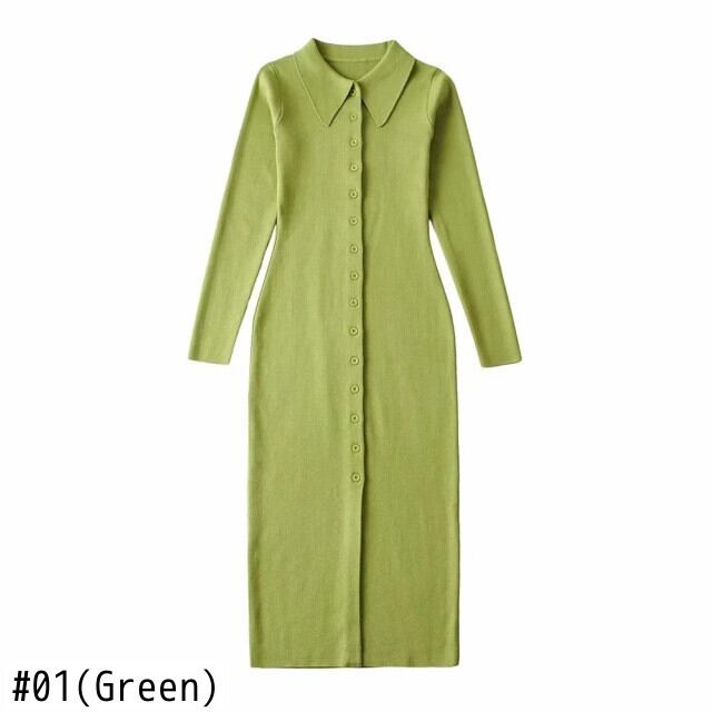 のみくまニット長袖ワンピースシングルブレストターンダウンカラーセーターワンピース秋冬ヴェスティドス6Z318 ロング オータム 秋物 ウィンター 冬物 ドレス kor56880480498