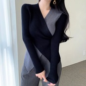 ノミクマヒットカラースリムウエストニットトップスレディース長袖Vネックスウェット2021秋冬ベーシックプル6L988 ロング オータム 秋物 ウィンター 冬物 kor68157488782
