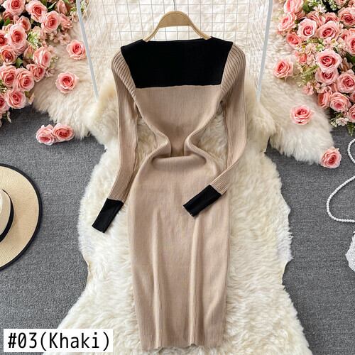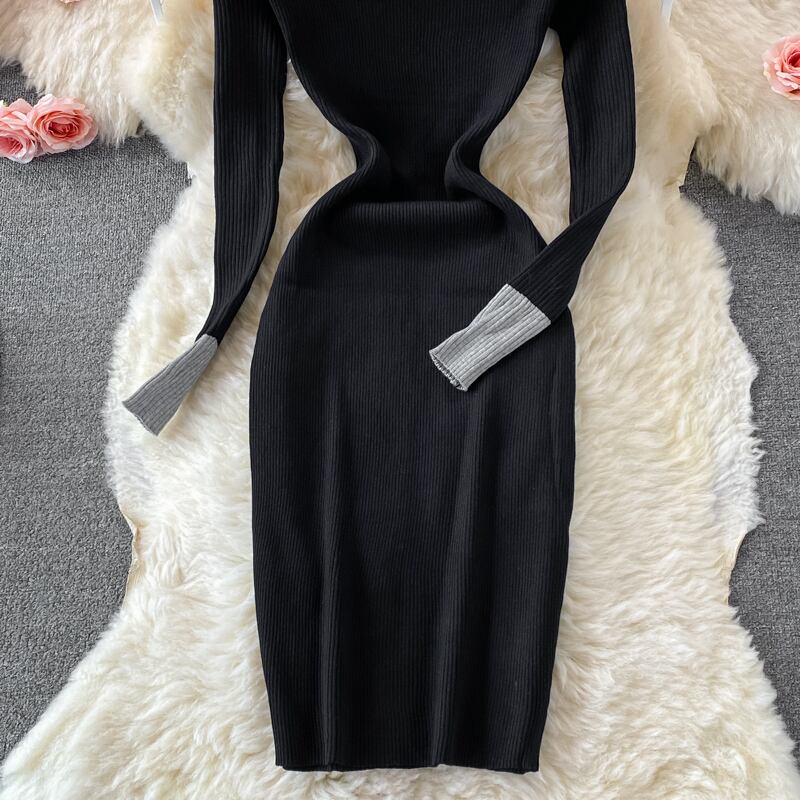 のみくまスタンドネックストレッチニットワンピースレディーススリムセーターワンピース2021秋冬ベーシックボディコーンヴェスティドス6L651 オータム 秋物 ウィンター 冬物 ドレス kor4445960852