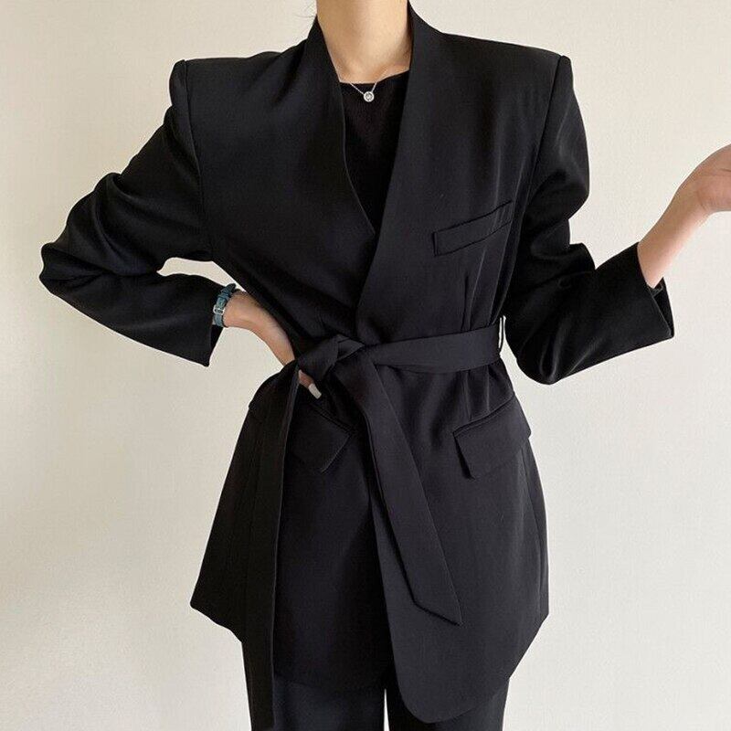 ノミクマVネックレースアップスリムウエストブレザーレディース長袖ポケットスーツジャケット2021オータムブレザーコート6Z206 ロング 秋物 kor85424902332