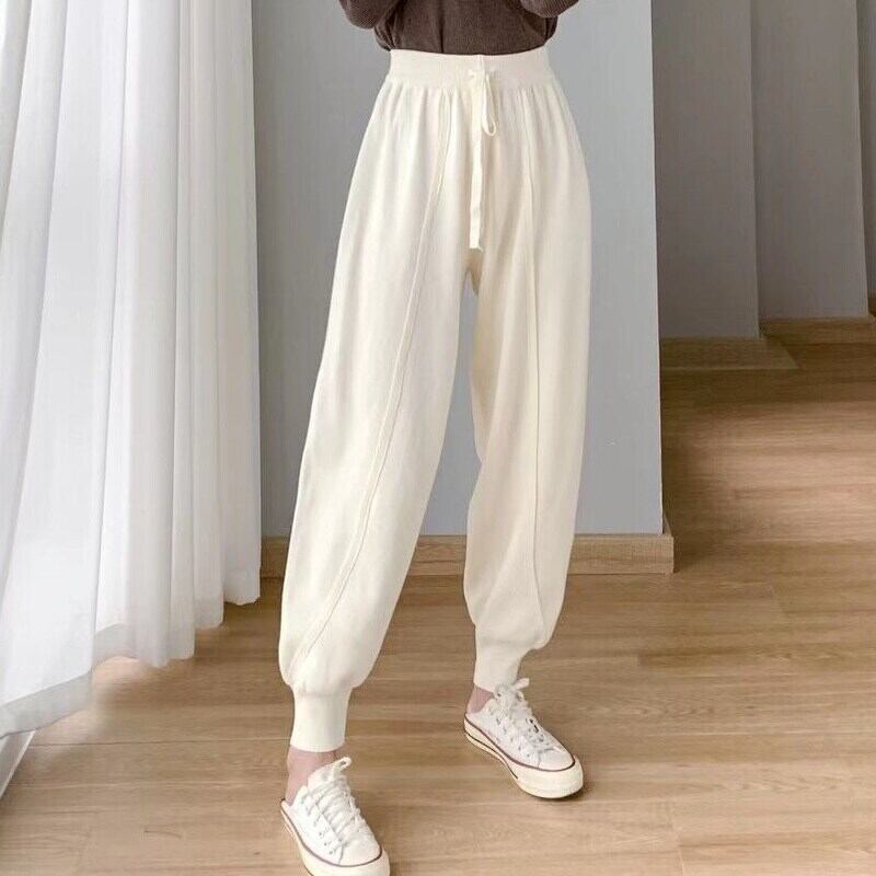 のみくま2021秋冬厚手セーターパンツレースアップウエスト足首丈パンツカジュアルニットハーレムパンツ6N012 オータム 秋物 ウィンター 冬物 kor87758161678