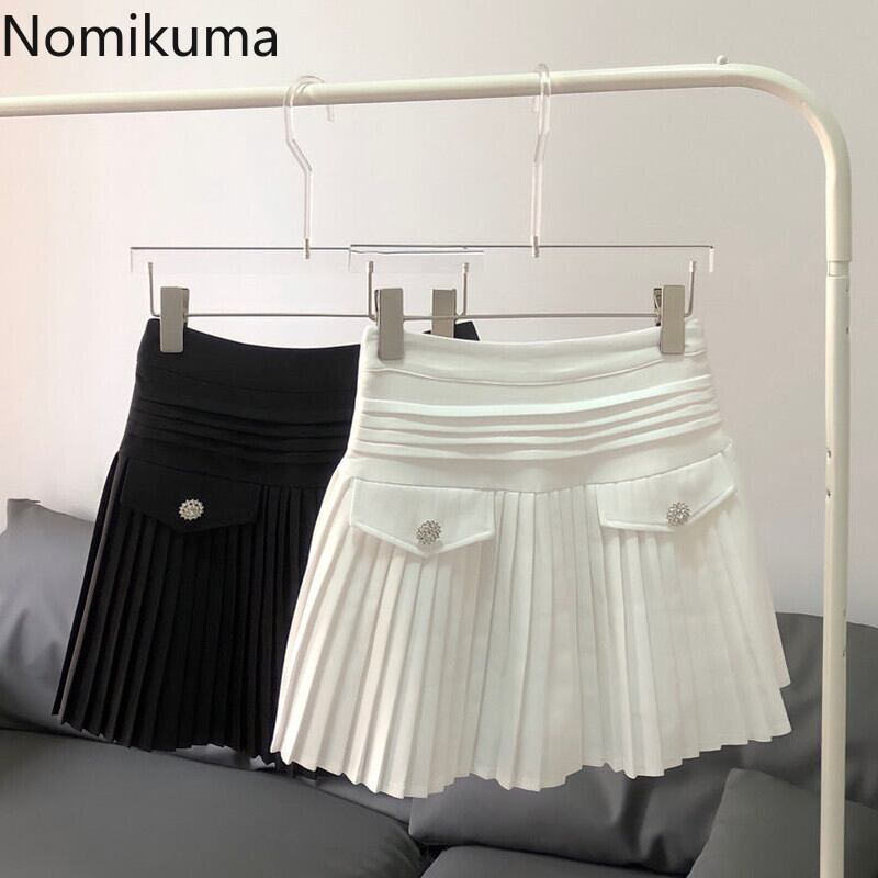 ノミクマ2021サマーウエストウーマンスカートダイヤモンドボタンプリーツスカート 夏物 kor27140163146