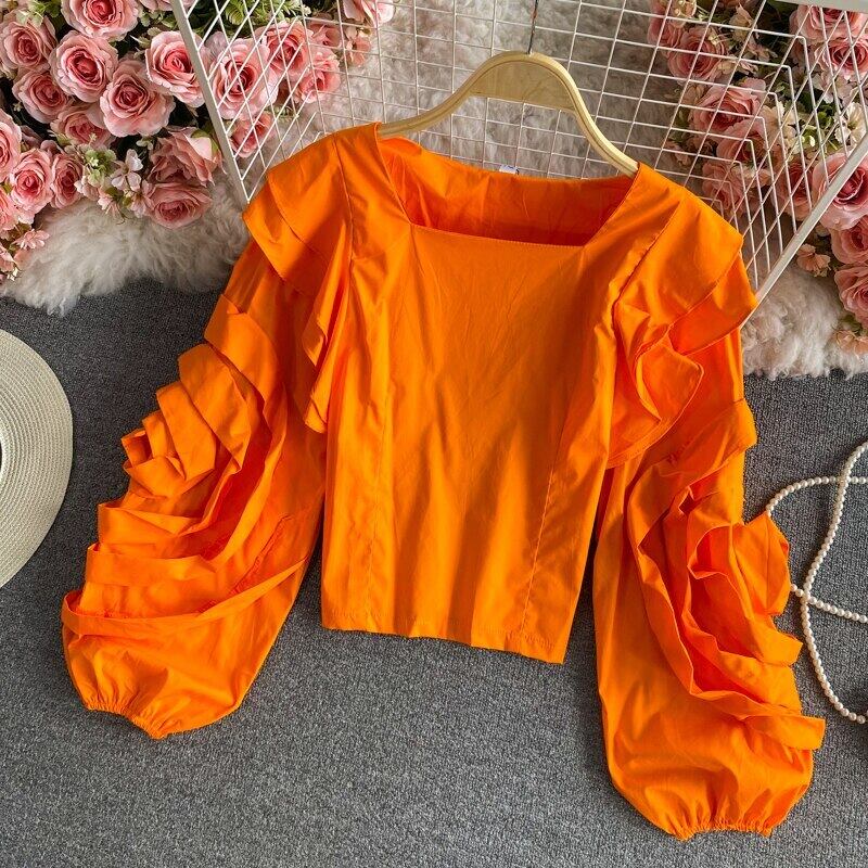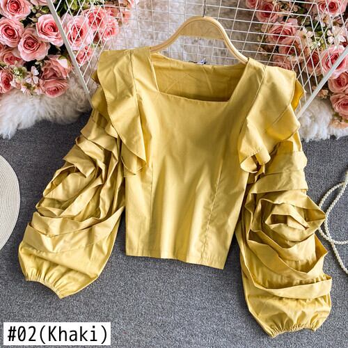 のみくまスクエアカラースリムショートブラウスフリルプリーツパフ長袖トップス2021春スウィートシャツ6G337 ロング 大人ガーリー キュート カジュアル スプリング 春物 スクウェア kor31358506909