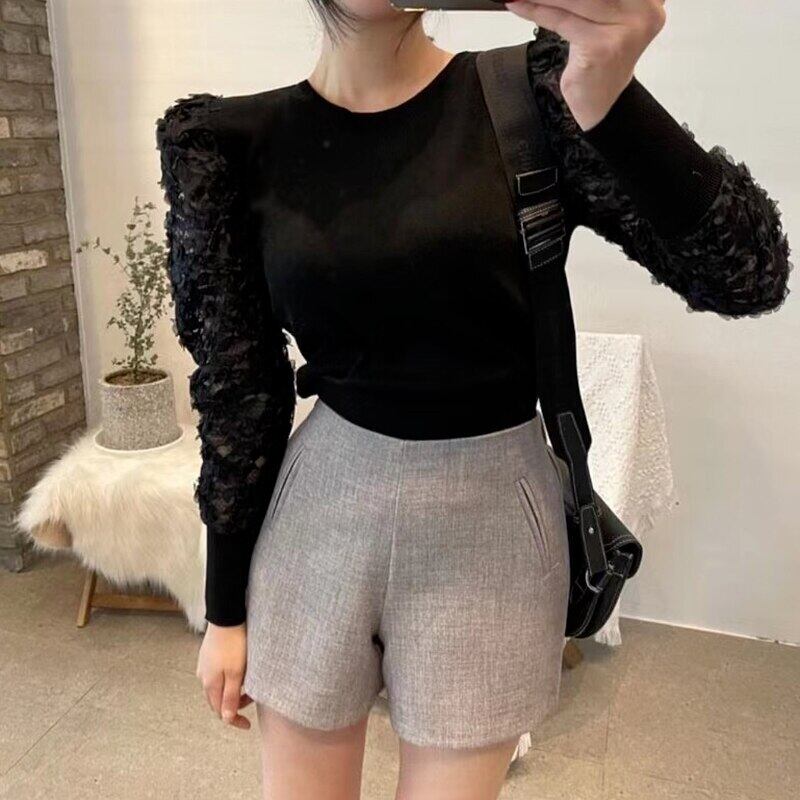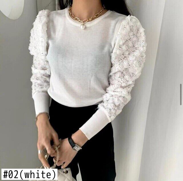 のみくまレースパッチワーク長袖セーター2021年秋冬ニットプルオーバースリムベーシックニット6Z193 ロング オータム 秋物 ウィンター 冬物 kor91422134963
