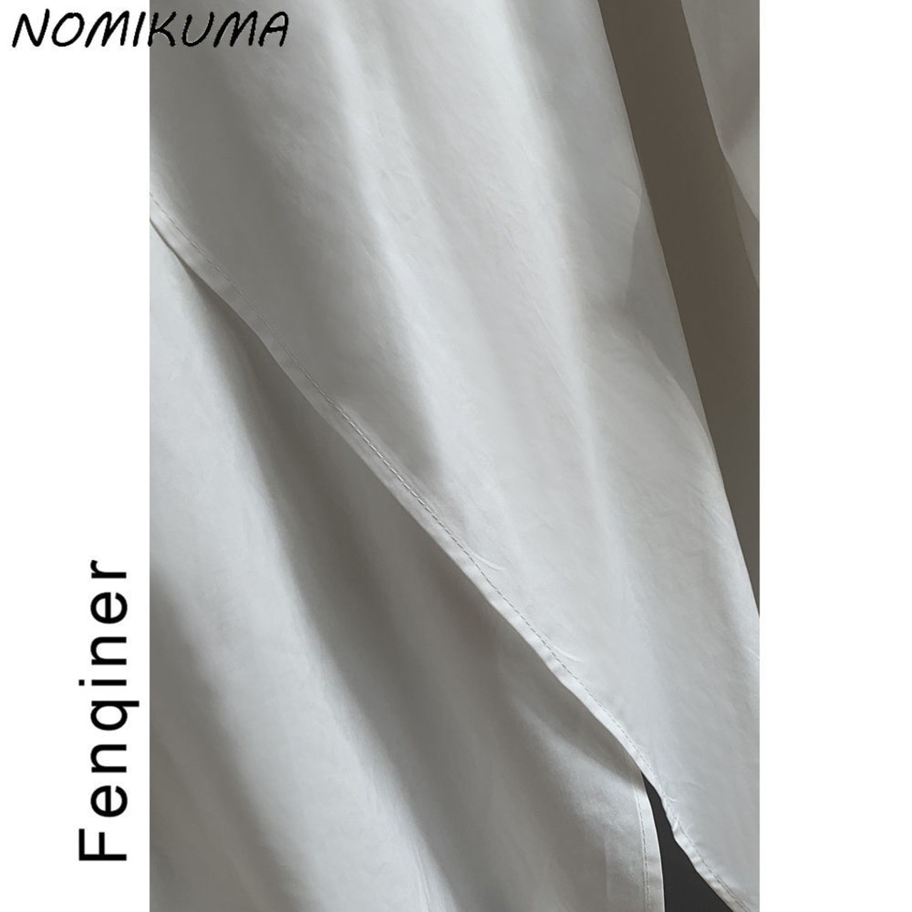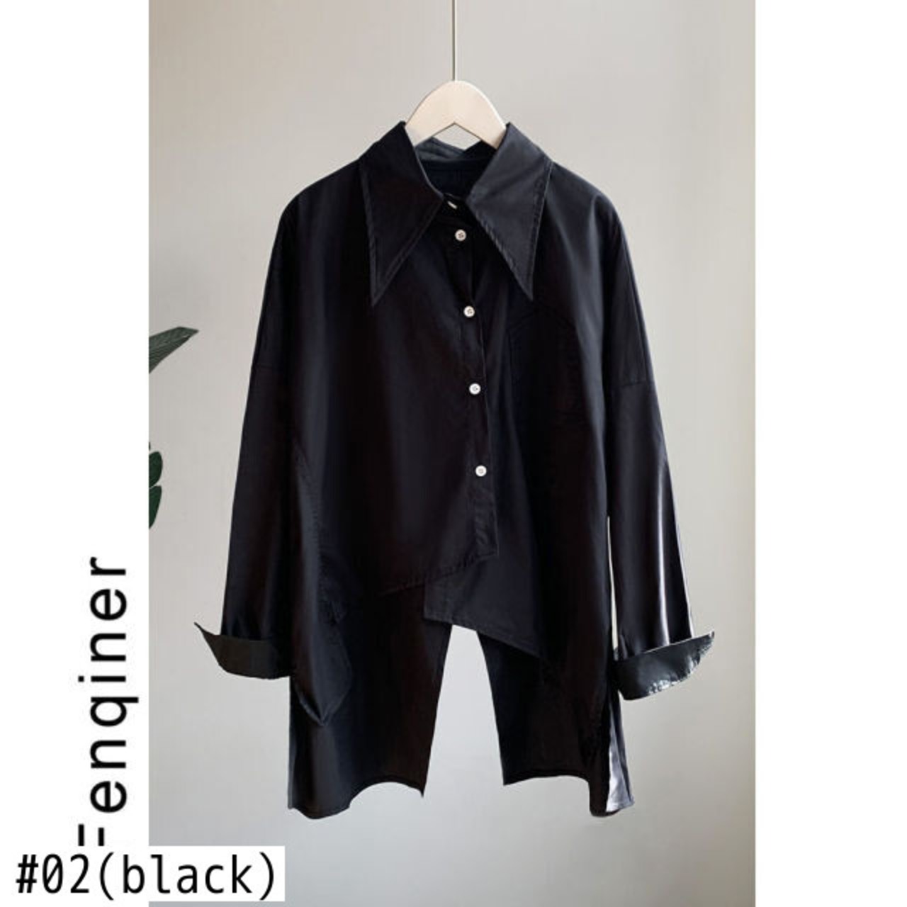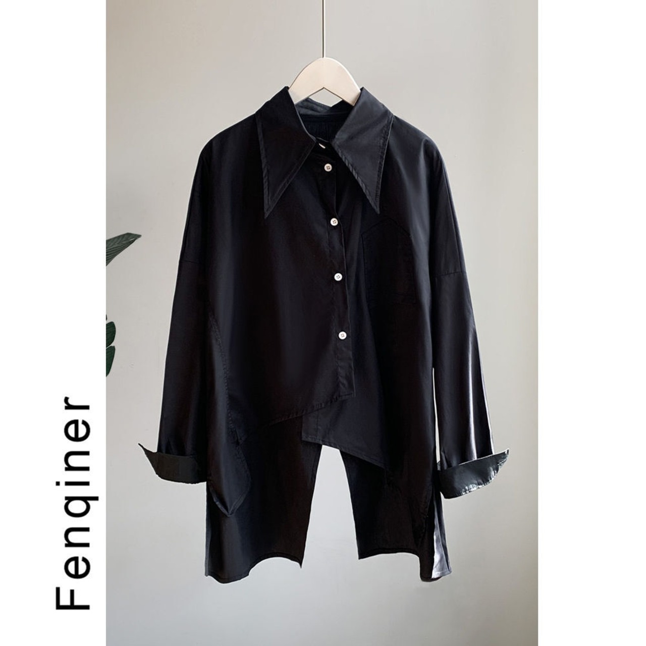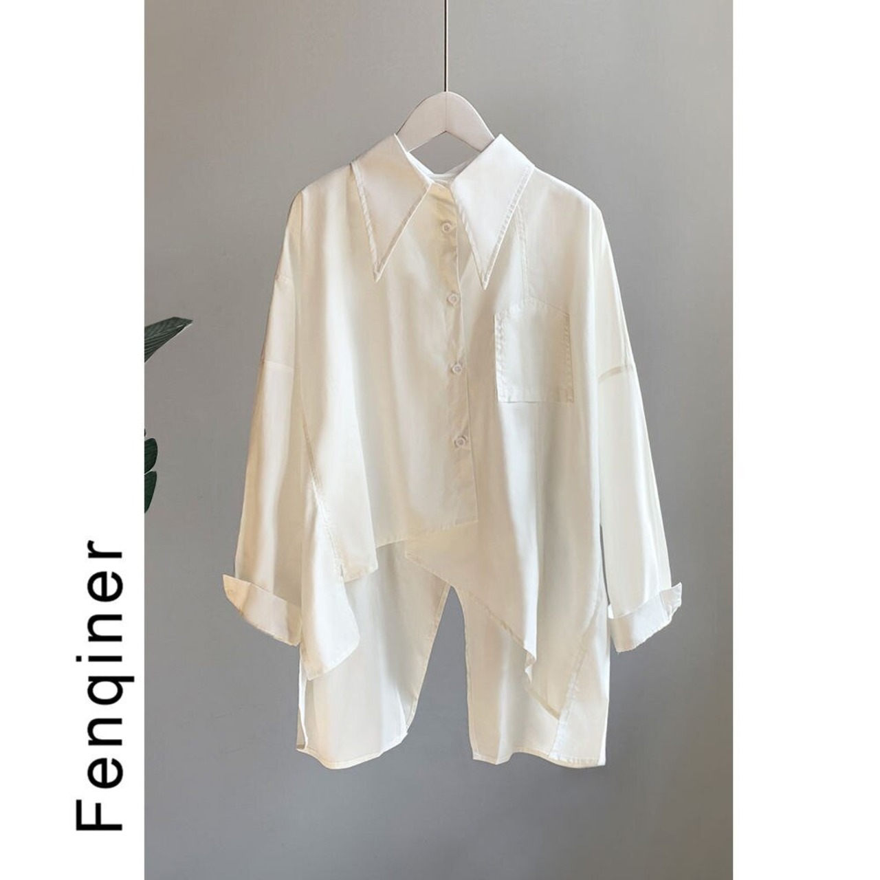 のみくま因果不規則な女性のシャツ2022年春の長袖ブラウストップスシングルブレストターンダウンカラー ロング スプリング 春物 kor33099260090