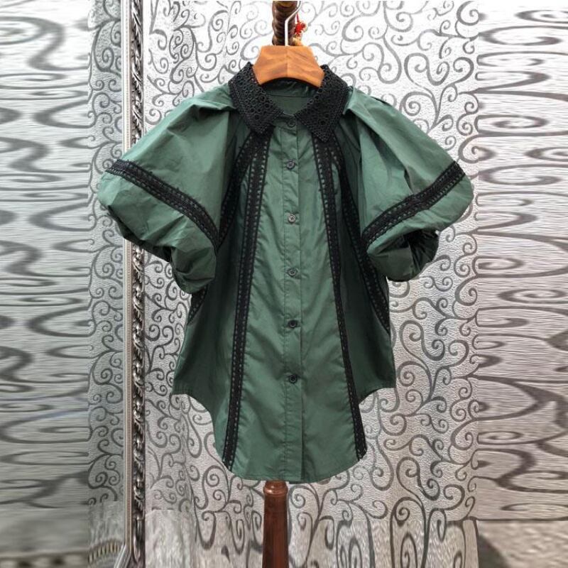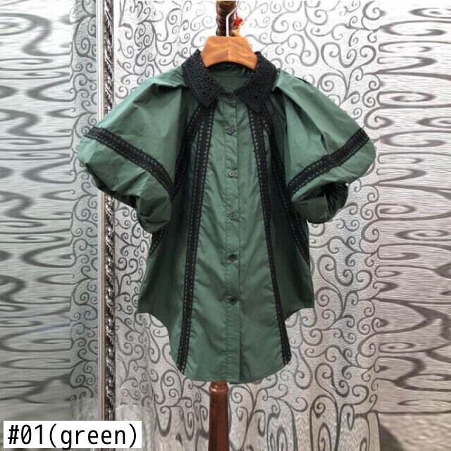 ノミクマホローアウトパッチワークブラウストップスCausalPuffスリーブターンダウンカラーシャツ20216H134 kor45912159067