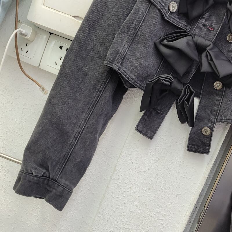 ノミクマショートデニムウーマンコートシックスウィートボウノットジーンズジャケットカジュアルロングスリーブターンダウンカラーオータムカウボーイ6L031 リボン 長袖 大人ガーリー キュート 秋物 kor84342356994