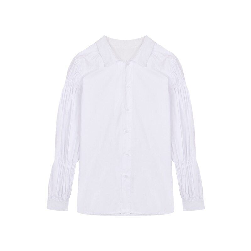 ノミクマ2020秋女性ブラウスプリーツパフ長袖因果ターンダウンカラーシングルブレストシャツ6D189 ロング オータム 秋物 kor59487210452