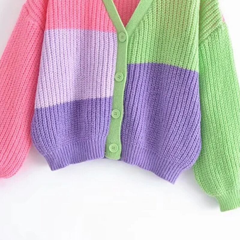 のみくまレインボーストライプニットカーディガンカジュアル長袖Vネックセーターコート2021秋冬女性ニットジャケット6K863 ロング オータム 秋物 ウィンター 冬物 kor77365311667