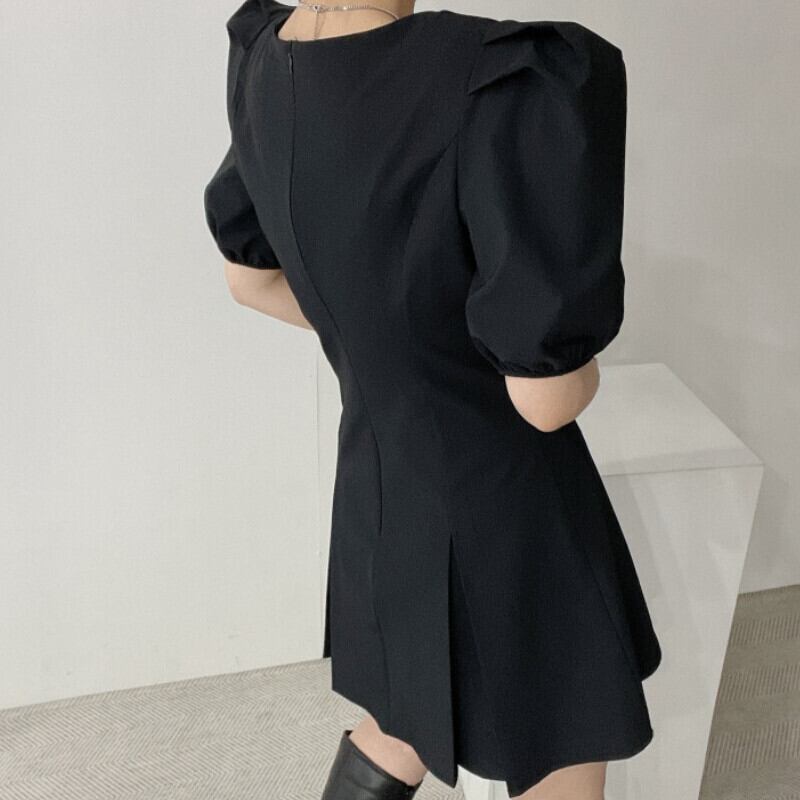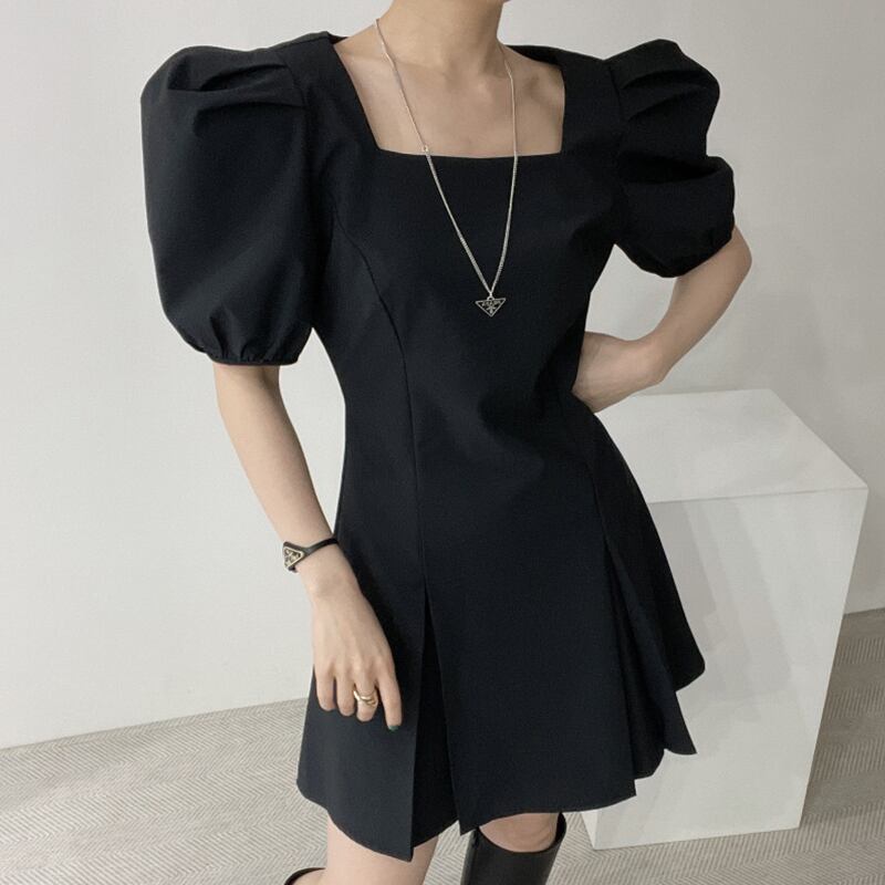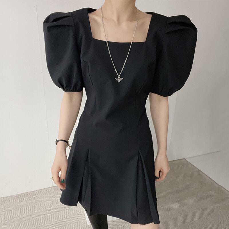 のみくまスリムウエストワンピースパフスリーブスクエアカラーレディースワンピースサマープリーツAライン 6K407 夏物 ドレス スクウェア kor51943208024
