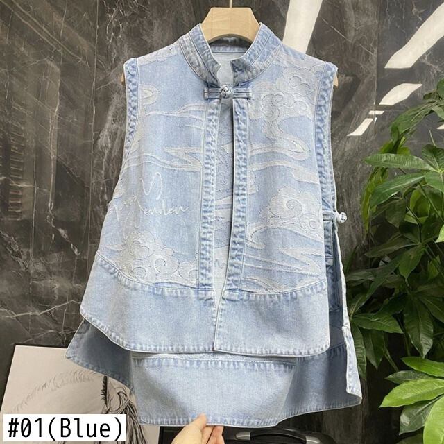 ノミクマヴィンテージジーンズベストレディースノースリーブスタンドネックコート2021不規則な因果デミンベスト6H283 ビンテージ kor9658618447