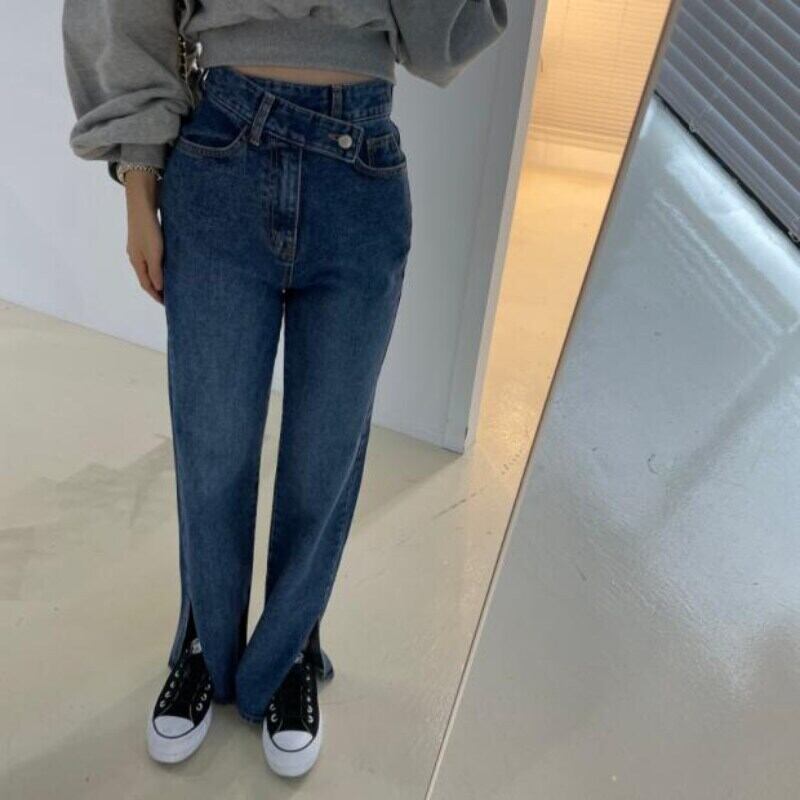 ノミクマウエストスプリットレディースジーンズパンツシックオータムロングパンツ2021デミンフレアパンツ6V903 秋物 kor78937918719