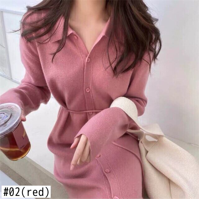 ノミクマベーシックセータードレスシングルブレストロングスリーブレディースニットドレスレースアップスリムウエストアンクルベスティドス6B596 長袖 kor48523999738
