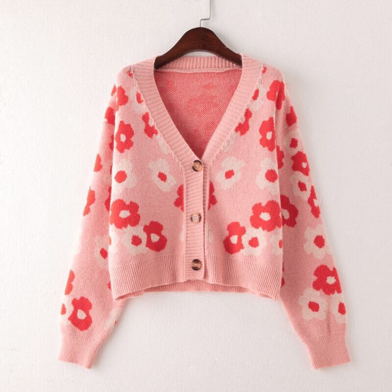 のみくまジャカードニットカーディガン女性2021年秋冬因果ショートフローラルセーター長袖ニットプル6L007 ロング オータム 秋物 ウィンター 冬物 花柄 kor1062965533