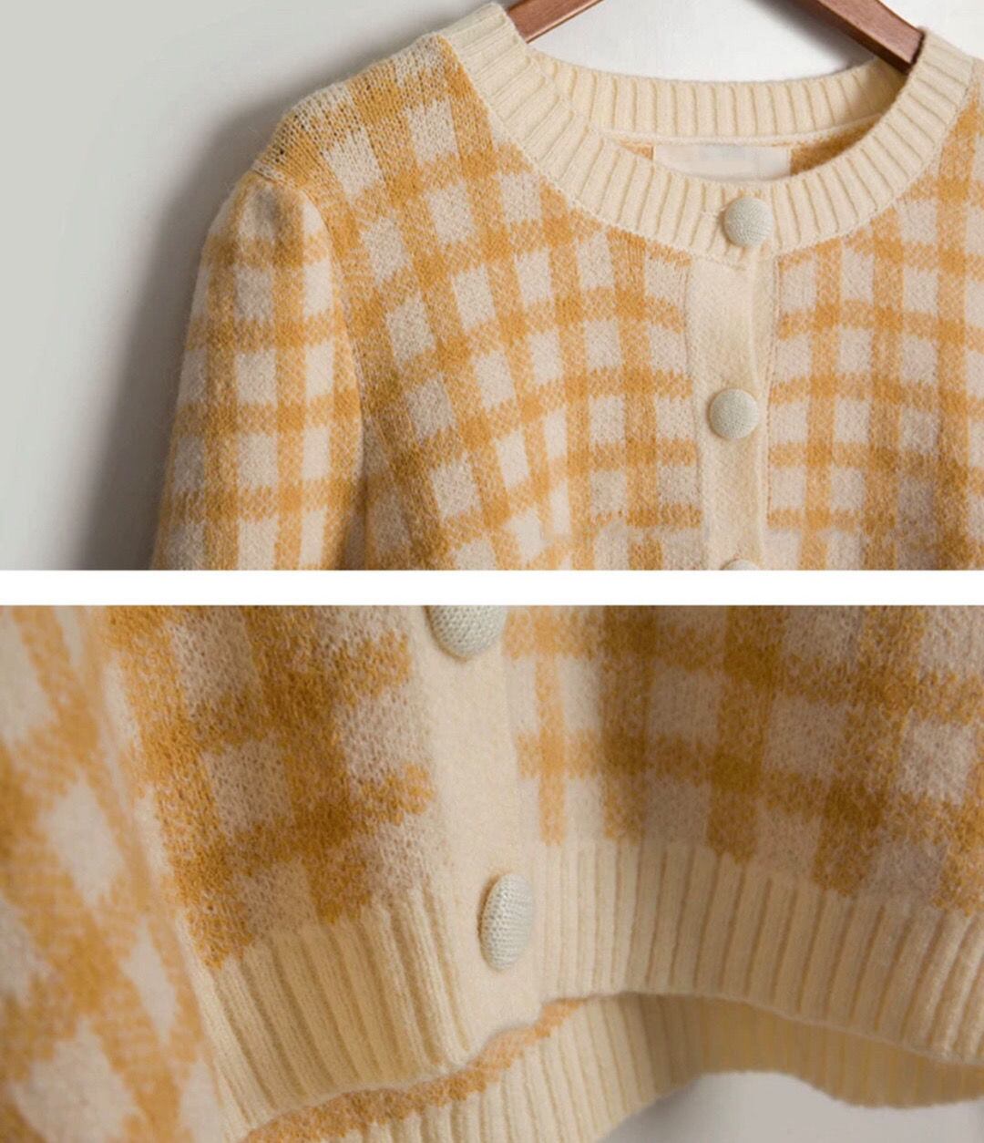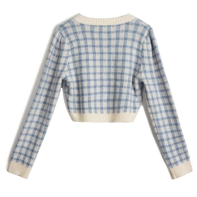 ノミクマヴィンテージチェック柄ニットカーディガンショートニットレディースコート2020秋長袖Oネックスウィートクロップトップセーター6D016 ロング 大人ガーリー キュート カジュアル オータム 秋物 ビンテージ kor17418670401