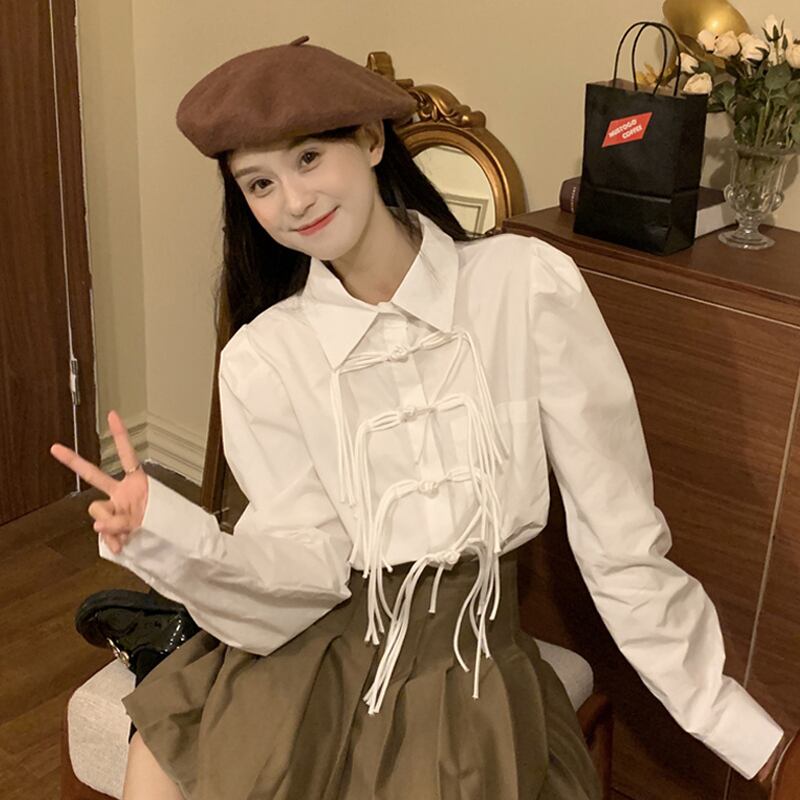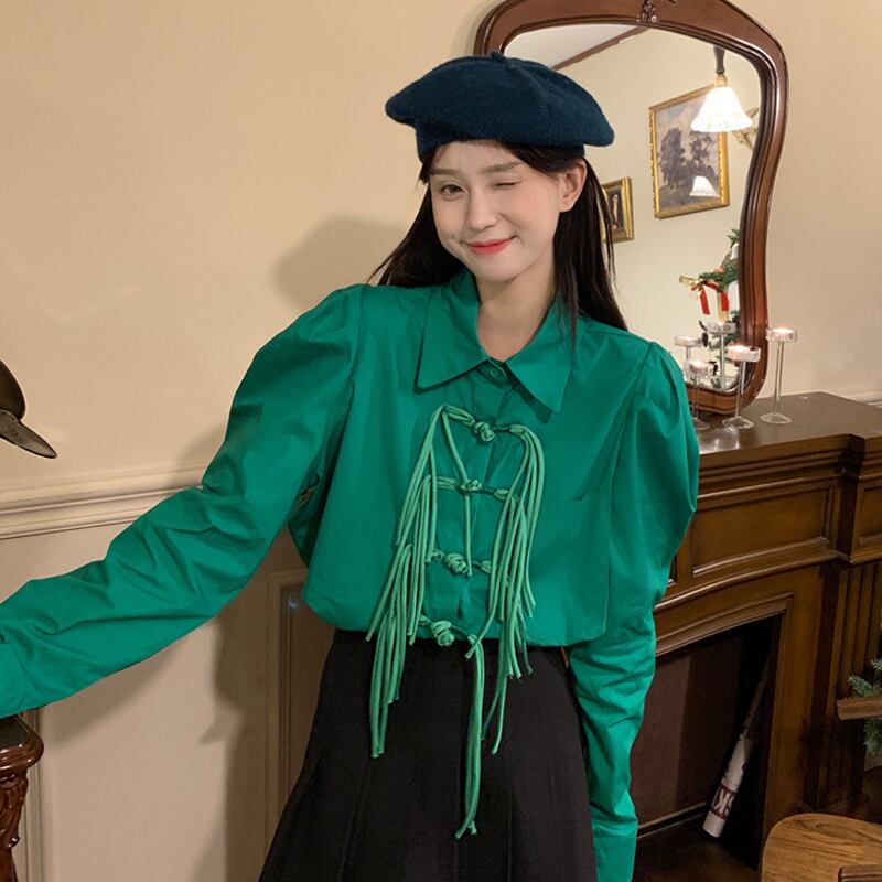 ノミクマTelシングルブレストブラウス女性長袖2022年春シャツ因果ターンダウンカラートップ ロング スプリング 春物 kor19941390544