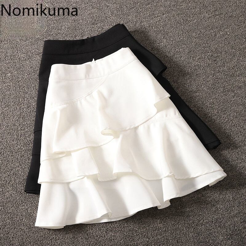 のみくまサマーフリルウーマンスカートウエストカジュアルAラインミニスカートソリッドスウィートボトムスFaldasModa 2021 6H120 大人ガーリー キュート 夏物 ソリッドカラー kor51294458289