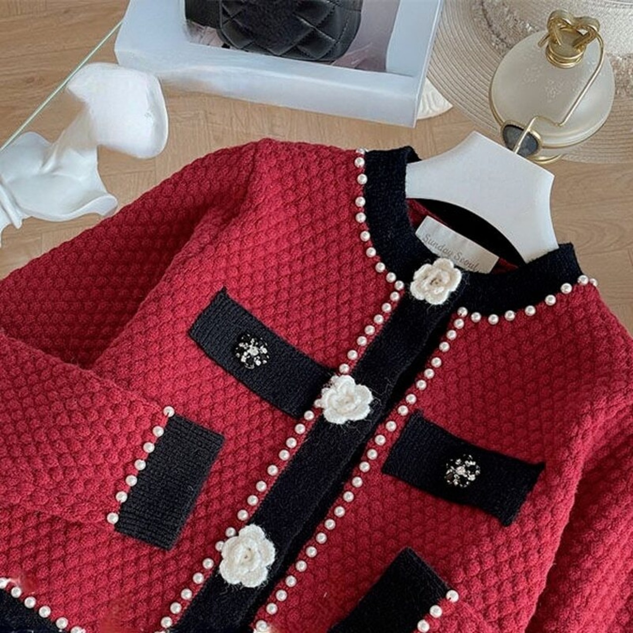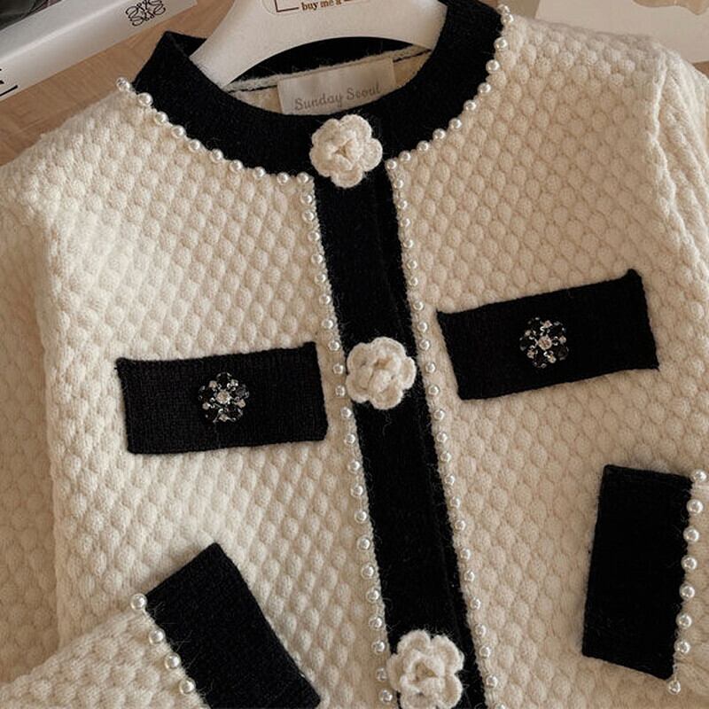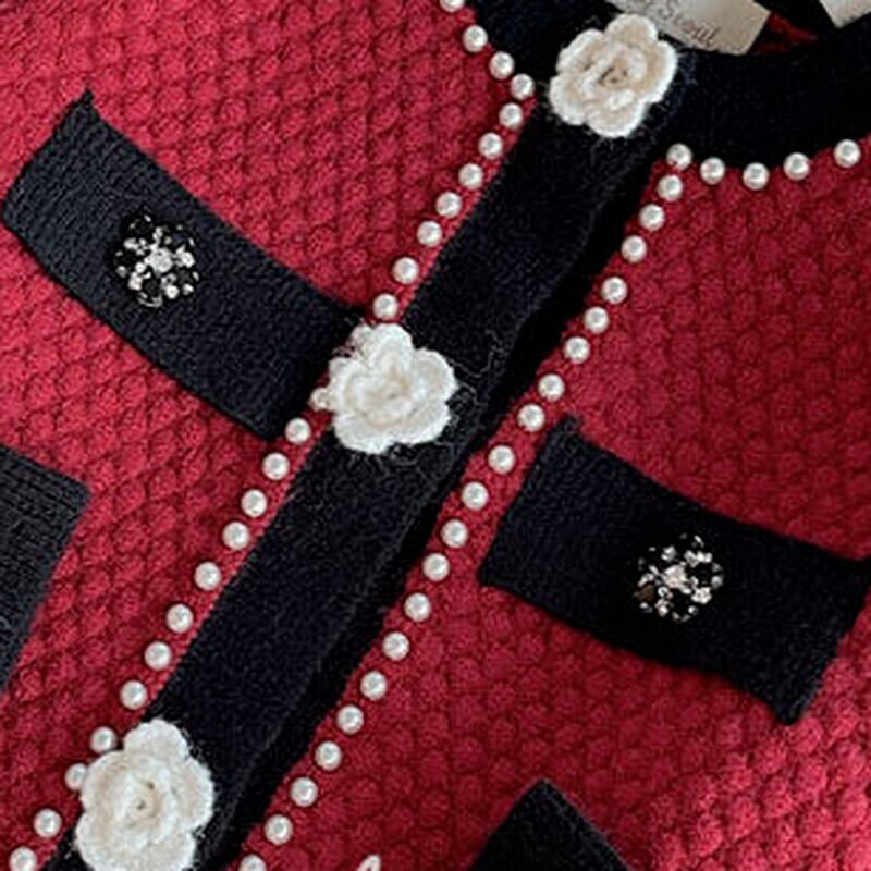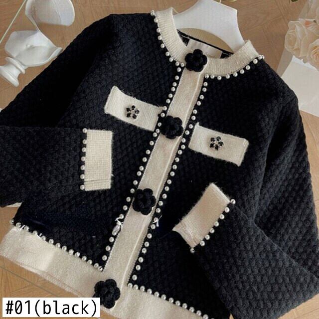 のみくまビーズフラワーボタンニットカーディガン2022春スウィートOネックセーター長袖ニットコート ロング 大人ガーリー キュート カジュアル スプリング 春物 フラワーデザイン kor38156384191