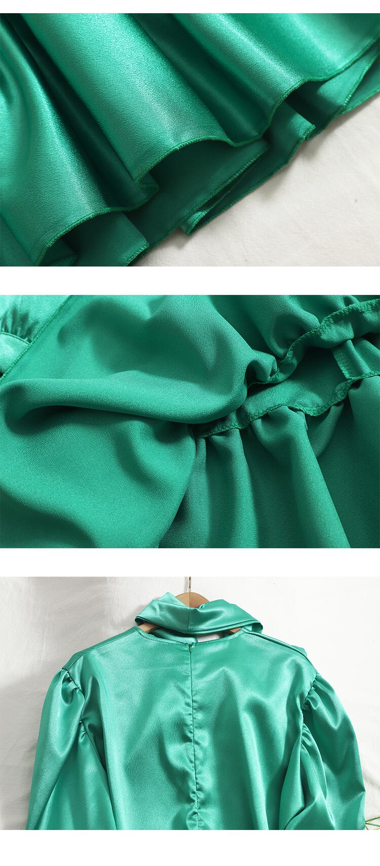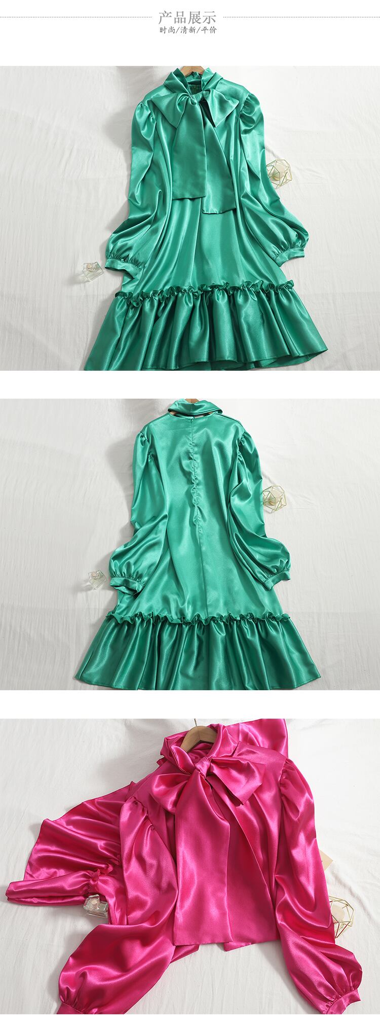 のみくまスウィートボウネクタイカラーサテンワンピース2021オータムパフスリーブヴェスティドスフリルカジュアルAラインウーマンワンピース6M034 リボン 大人ガーリー キュート 秋物 ドレス kor48775761433