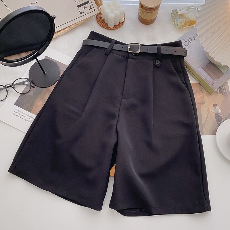 のみくまベルトウエストウーマンハーフパンツCausal2022サマーパンツCausalソリッドワイドレッグ膝丈パンツ 夏物 ハーネス ワイドパンツ ソリッドカラー kor32450252448
