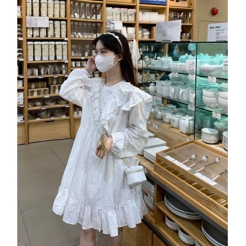 ノミクマシックスウィートフリルドレスレディースパフスリーブOネック2022年春ドレスCausalLooseWaist Vestidos 大人ガーリー キュート カジュアル スプリング 春物 kor75851098120
