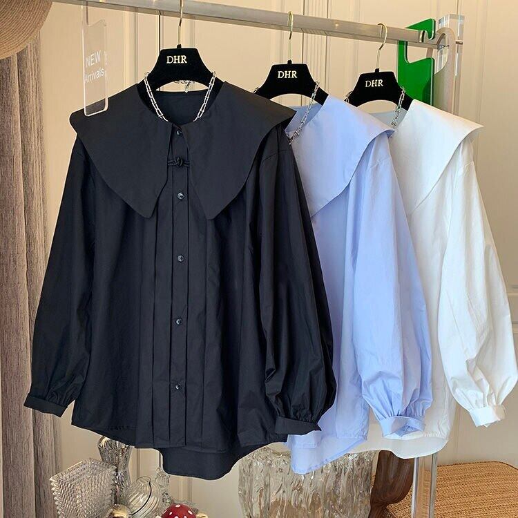 Nomikuma Vintage Single Breasted Women Blouses Causal Puff Sleeve Peter Pan Collar Top Shirt 2022 Spring De ブラウス スプリング 春物 ビンテージ kor35562828801
