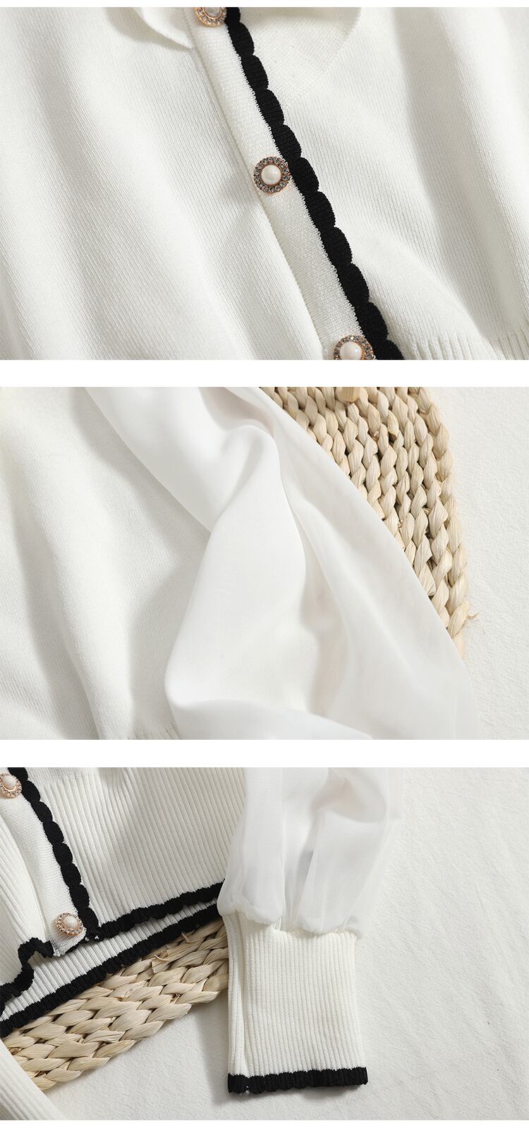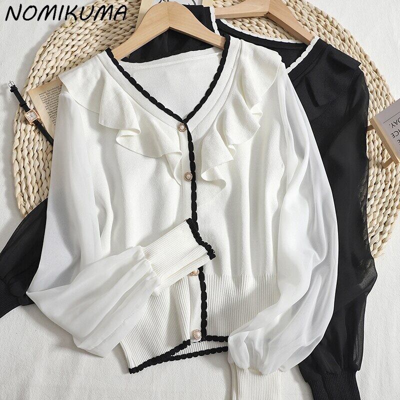 のみくまVネックフリルニットレディース2022年春夏セーターコートCausalシフォン長袖パッチワークカーディガン ロング スプリング 春物 サマー 夏物 kor75470386230
