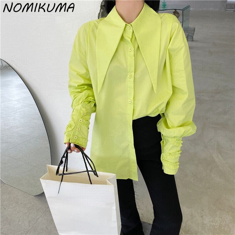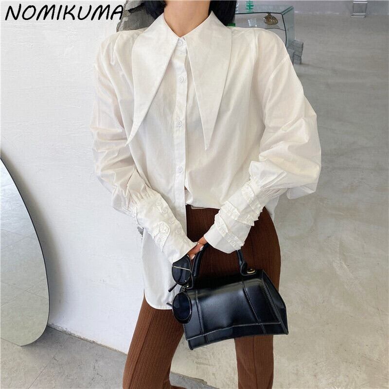ノミクマターンダウンカラーレディースブラウスパフスリーブシャツ2022SpringLoose Style De スプリング 春物 kor1579992946