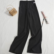 ノミクマレディーススーツパンツ2022スプリングエラスティックウエストロングパンツCausalSolidWide Leg Pants 伸縮 春物 ワイドレッグ ワイドパンツ ソリッドカラー kor38274664707