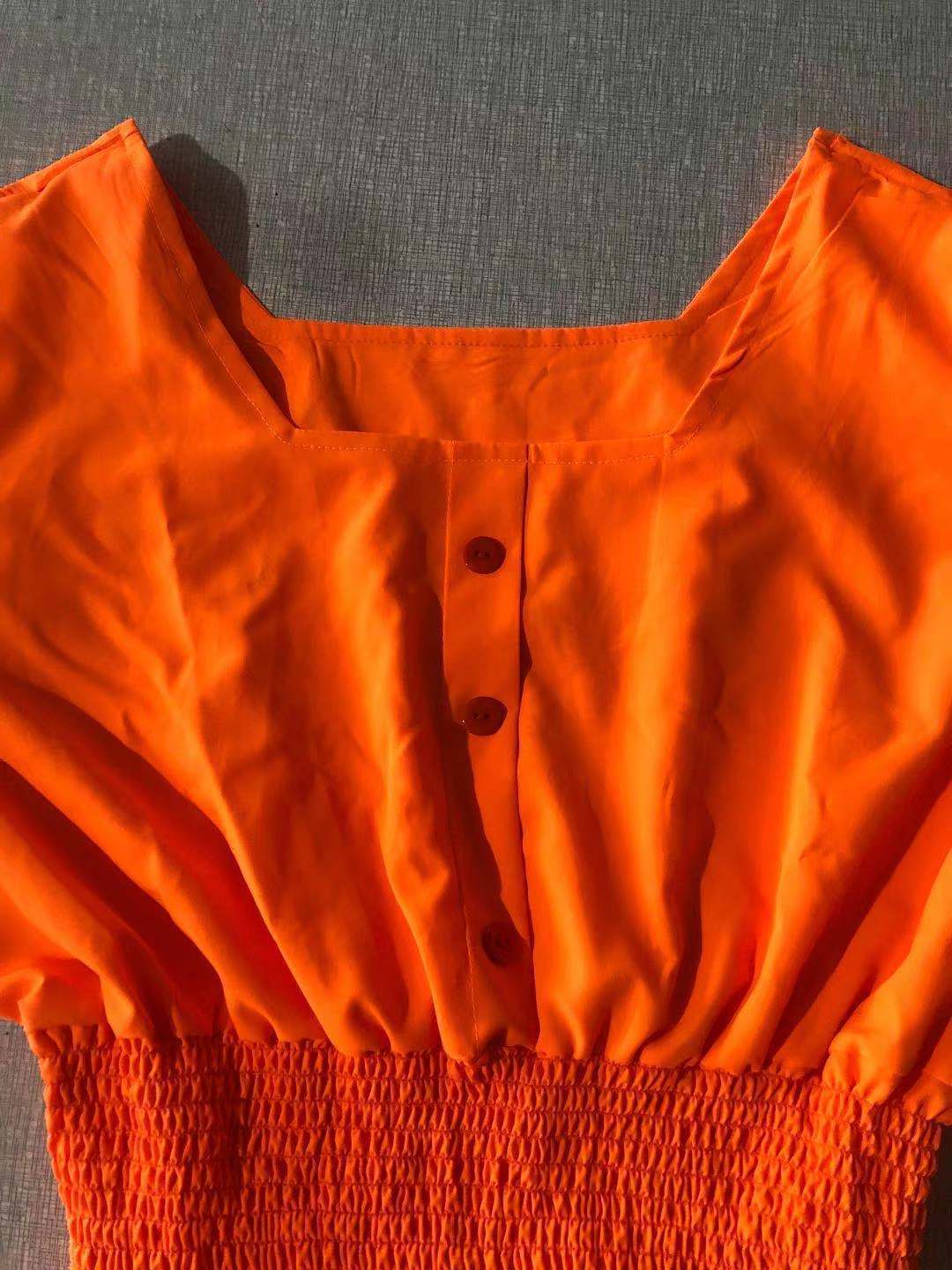 サマーウーマンドレスシックなスクエアカラーパフスリーブVestidosウエストカジュアルAラインビーチスタイルドレス 夏物 スクウェア kor89100917025