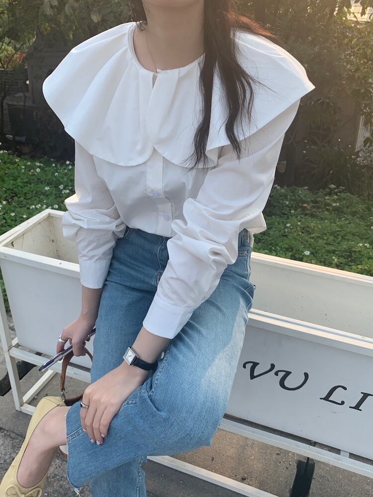 ノミクマシックピーターパンカラーブラウスシャツカジュアルパフスリーブスウィートレディーストップ2022SpringDe 大人ガーリー キュート スプリング 春物 kor68889291777