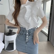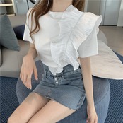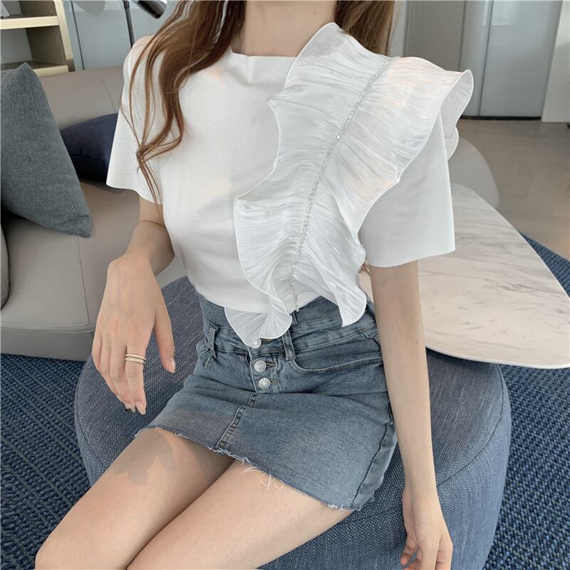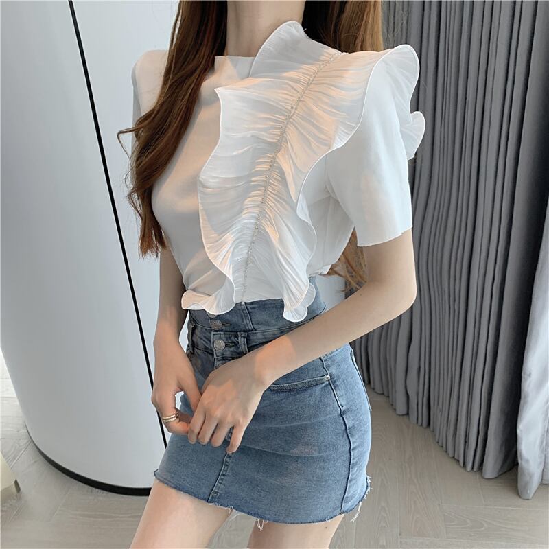 のみくまシックスウィートフリルウーマンTシャツ半袖2022年春夏グラフィックTシャツCausalソリッドスリムトップスシャツ ショート ハーフスリーブ 大人ガーリー キュート カジュアル スプリング 春物 サマー 夏物 ソリッドカラー kor75996041456