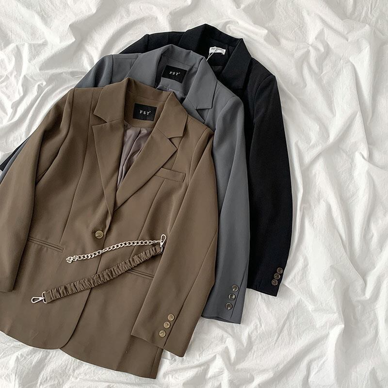 のみくまベルトスリムウエストウーマンブレザーコート2022春秋スーツジャケット長袖ターンダウンカラーブレザー ロング スプリング 春物 オータム 秋物 ハーネス kor41929482690
